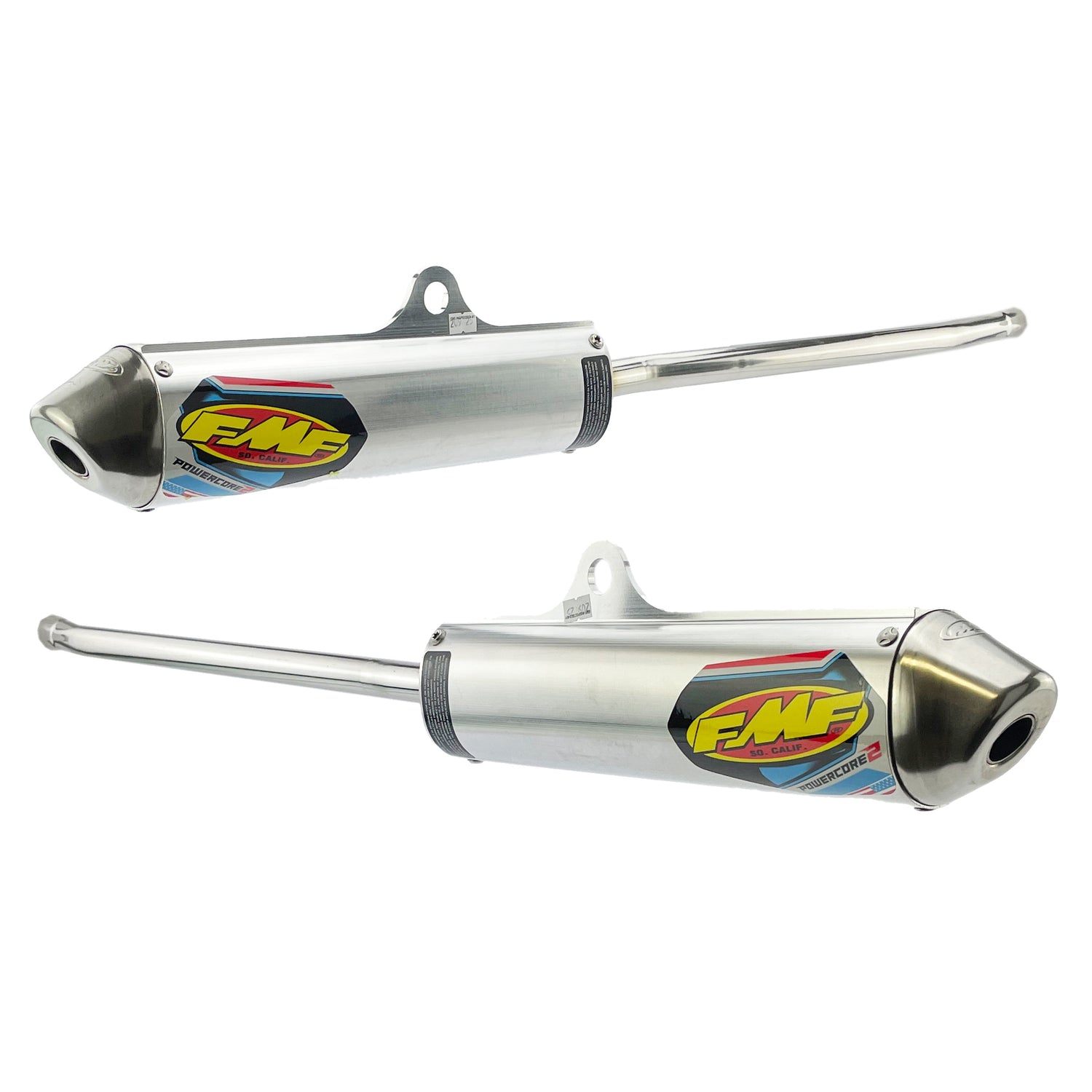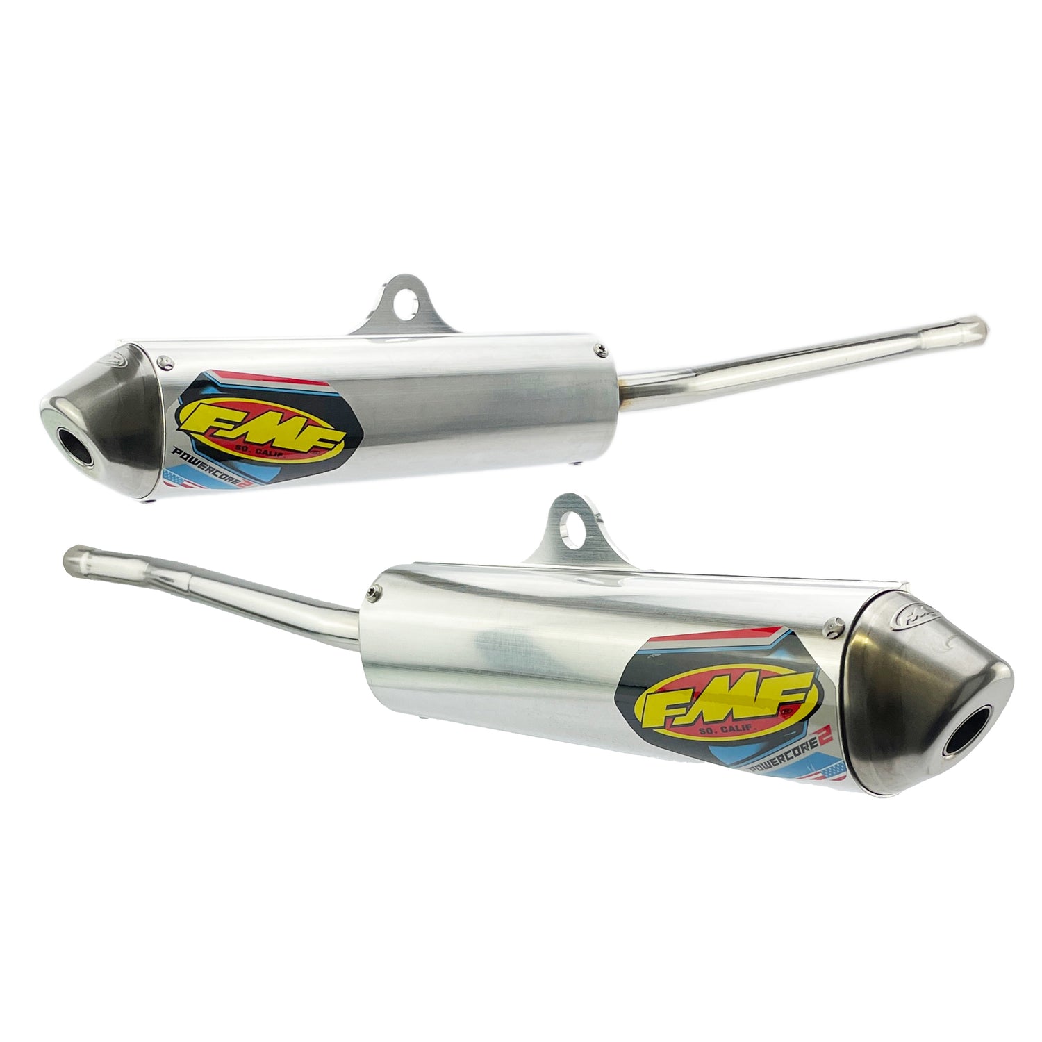 06-260.FMF.PC2FMF Racing’s PowerCore 2 020264 silencer delivers a high-performance solution for two-stroke machines, featuring an extruded aluminium oval canister combined with a perforated core for both lightweight and durability. Complemented by stainless steel end cap and front stinger, this silencer enhances engine response while maintaining robustness and a striking appearance. Renowned for redefining performance standards, the PowerCore 2 020264 delivers gains and reliability suitable for demanding riders.