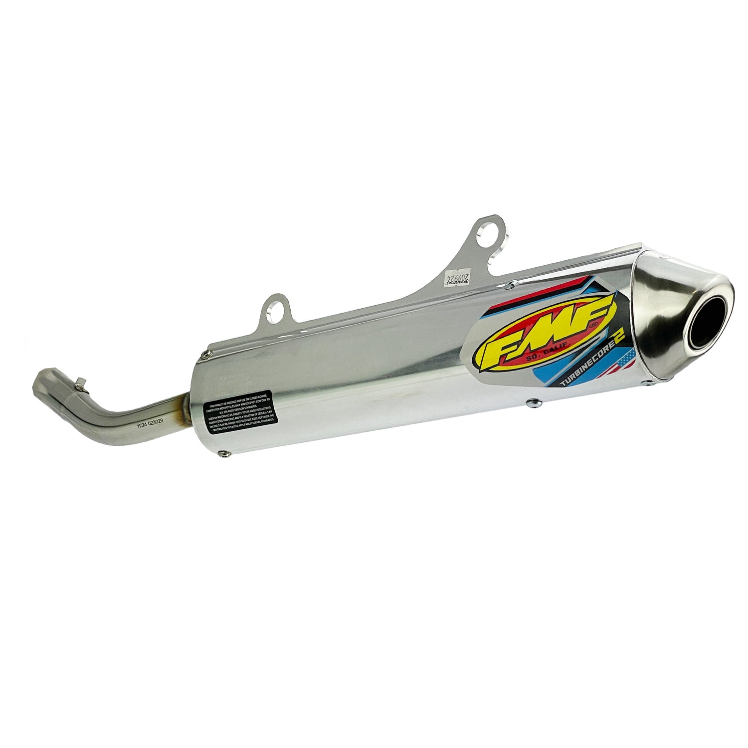 06-553.FMF.TC2The FMF Racing TurbineCore 2 023029 utilises the exclusive “Turbine Dampening System” to deliver class-leading exhaust flow combined with reliable spark arrestor function. Featuring a high-performance, straight-through spark arrestor canister and a durable stainless steel end cap, this silencer is both track and trail proven, offering unrestricted power alongside compliance with U.S. Forest regulations. Renowned globally, the TurbineCore 2 sets the benchmark for spark arrestor exhaust systems.
