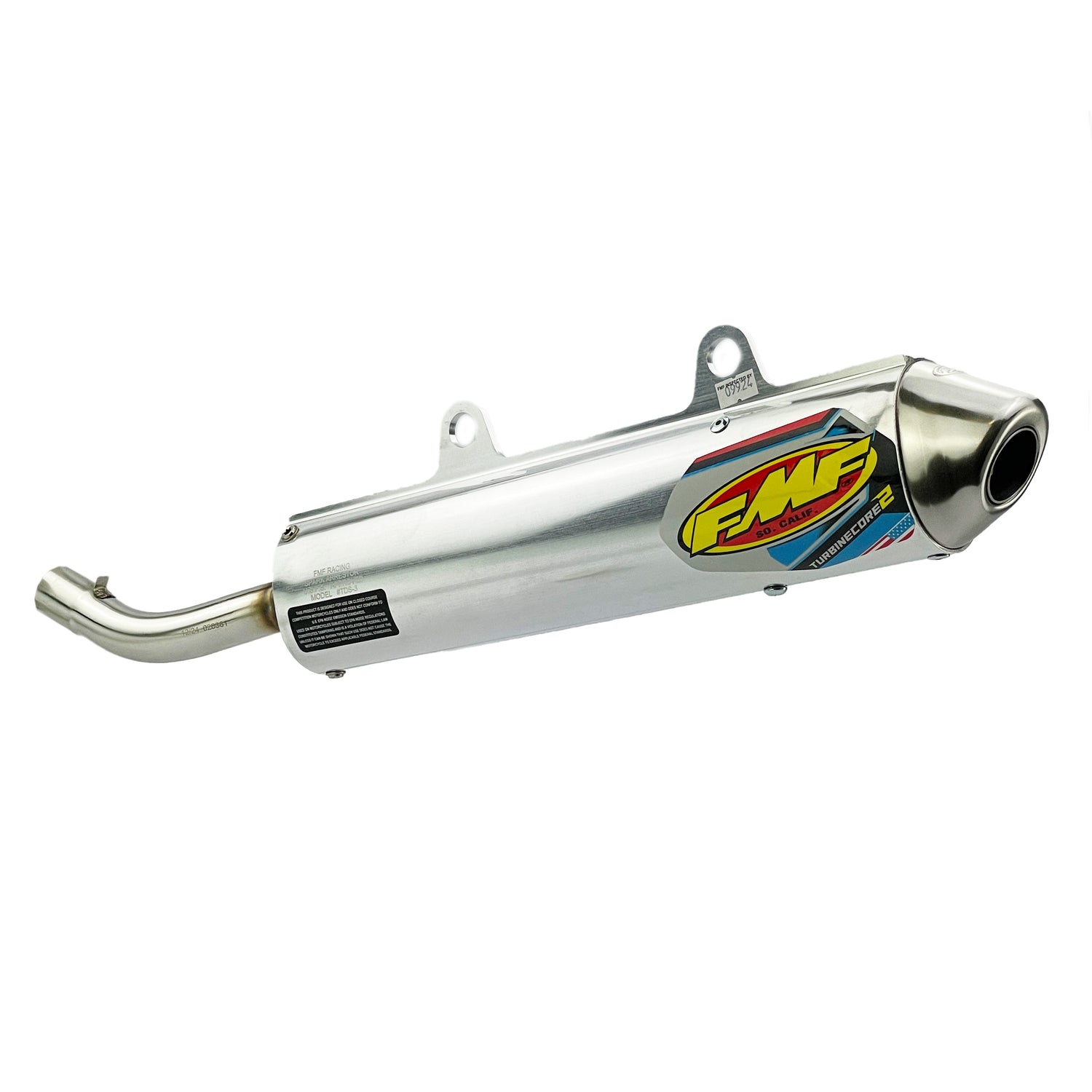 06-877.FMF.TC2The TurbineCore 2 020361 is FMF Racing’s top-selling silencers solution, equipped with the exclusive Turbine Dampening System for maximum performance and reliability. Designed with a straight-through, spark arrestor canister and a robust stainless steel end cap, this silencer delivers proven, unrestricted power for demanding track and trail riding. Its U.S. Forest Service legal status and unrivalled market leadership make it the worldwide standard for spark arrestors.
