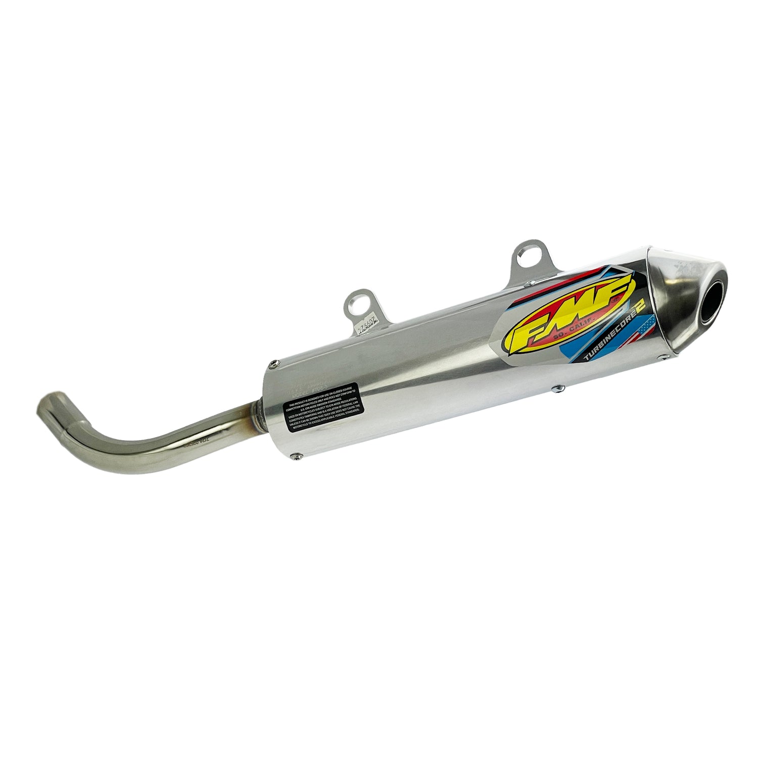06-9903.TC2The FMF Racing TurbineCore 2 025262 sets the benchmark for off-road silencers with its exclusive Turbine Dampening System, designed to deliver superior power while meeting U.S. Forest spark arrestor requirements. Constructed with a straight-through spark arrestor canister and robust stainless steel end cap, this model ensures both exceptional durability and high-performance, unrestricted airflow. Track- and trail-tested, the TurbineCore 2 is reputed as the world’s leading spark arrestor, making it a reliable choice for demanding riders.