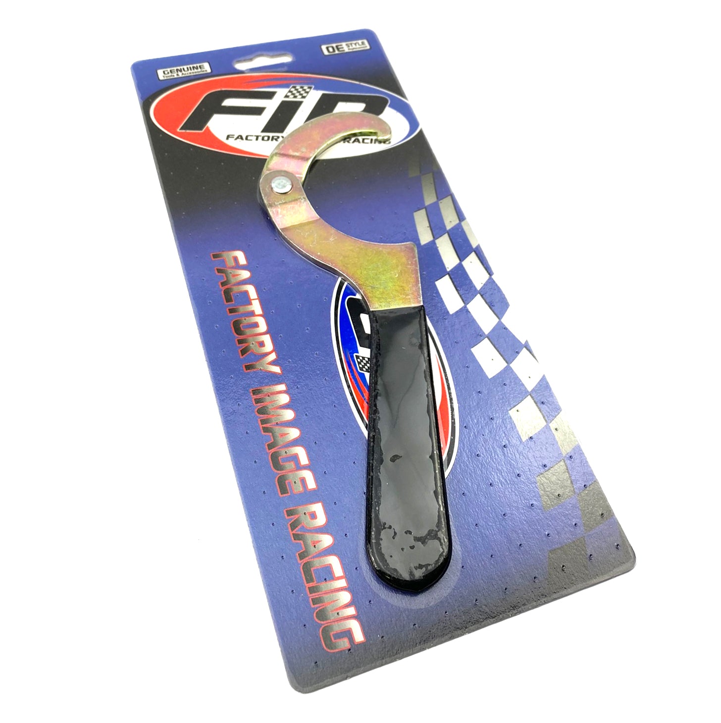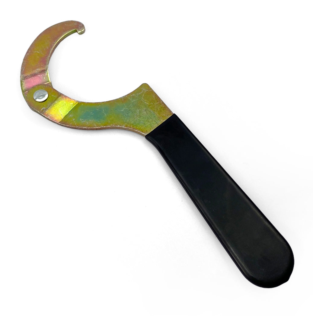 - Pre-load C shock wrench, universal single shock pre-load adjuster with a pvc coated handle.