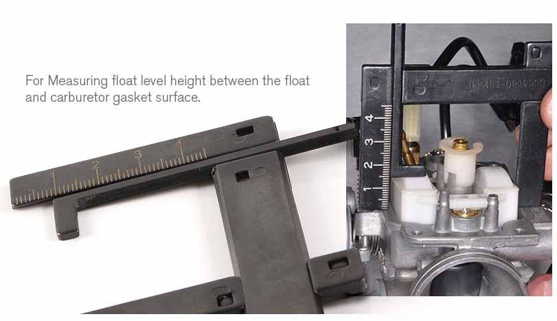 - Measures float level height between the carburetor gasket surface and float.