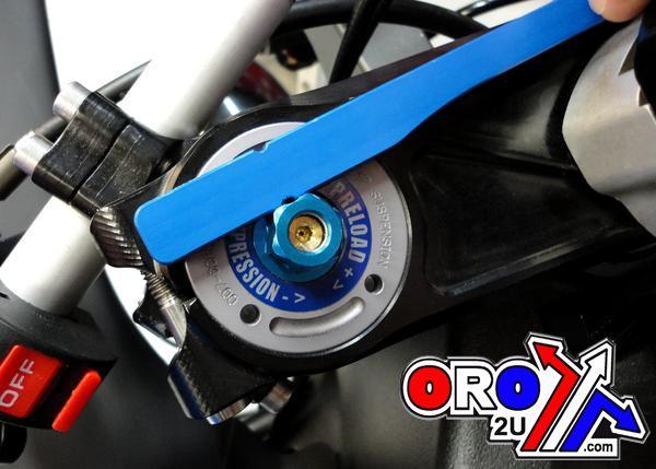 - The tool can be positioned on the front or rear of the forks, depending on the setup.