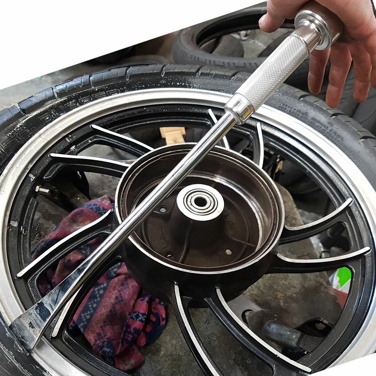00-502.EACHThe CNC Alloy Handle Tyre Lever is a professional-grade, heavy-duty tool designed for demanding tire and rim applications. Measuring 16 inches in length, it features a forged chrome steel shaft for strength and durability. The ergonomic handle is CNC machined from billet aluminum and includes a large end knob for effective use with a mallet, facilitating precise leverage between bead and rim. Ideal for quick mousse changes in professional settings.