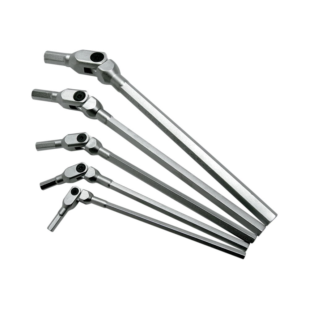 00-629Motion Pro Hexagon Pro SAE Pivot Head Allen key set, designed for accessing hard-to-reach fasteners with ease. This 5-piece set features a 180-degree swivel head for versatility, extra-long handles for added leverage, and durable construction for reliable performance.