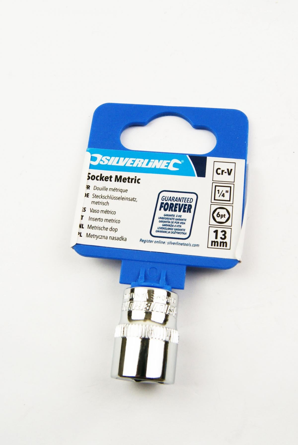 13mm Replacement Socket Manufactured from chrome vanadium steel, hardened, tempered chrome plated and satin finished, chamfered ends for positive nut location and special radius design to give added torque and life expectancy. Sockets have a knurled band for extra hand grip and a hole for positive ball retention.
