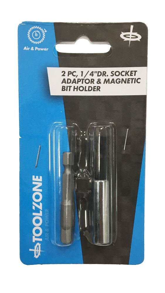 Toolzone Magnetic Bit Holder and Adaptor 2pc 1/4 Drive 50mm 60mm - Toolzone Kdpsd240