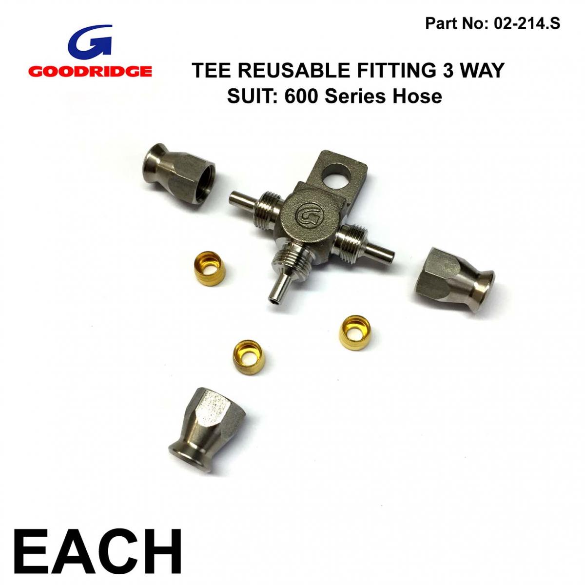 Tag-z Tee Reusable Fitting 3 Way, Suit 600 Series Brake Hose, Oem Goodridge 5136-03c