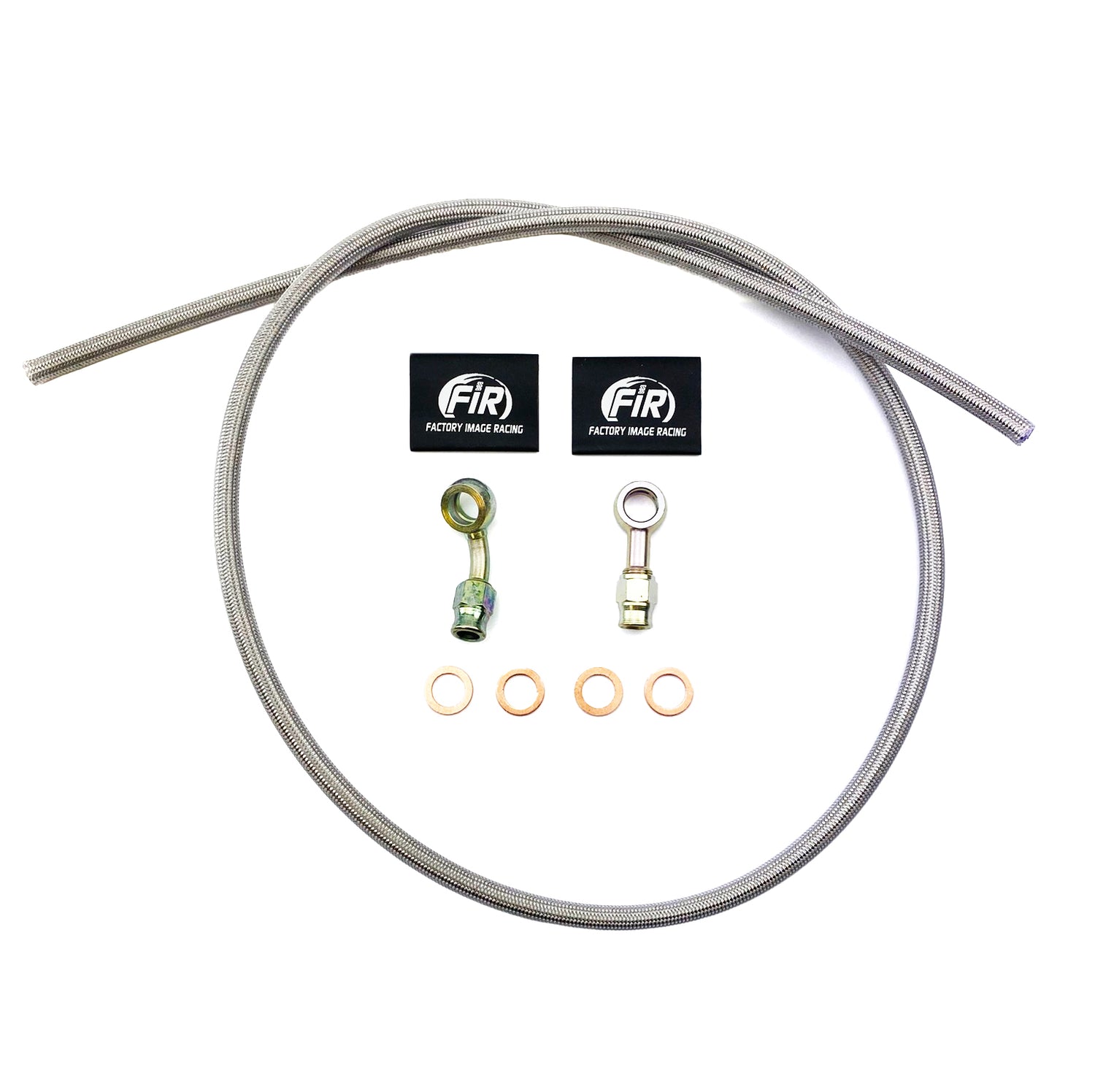 MAKE UP. 02-221.EA Banjo Reusable Straight QTY 1, 02-224.EA Banjo Reusable 20' QTY 1, 02-203.EA Copper Washers M10 QTY 4, 02-225.01 Hose 1000mm Long -3 Stainless Steel QTY 1,