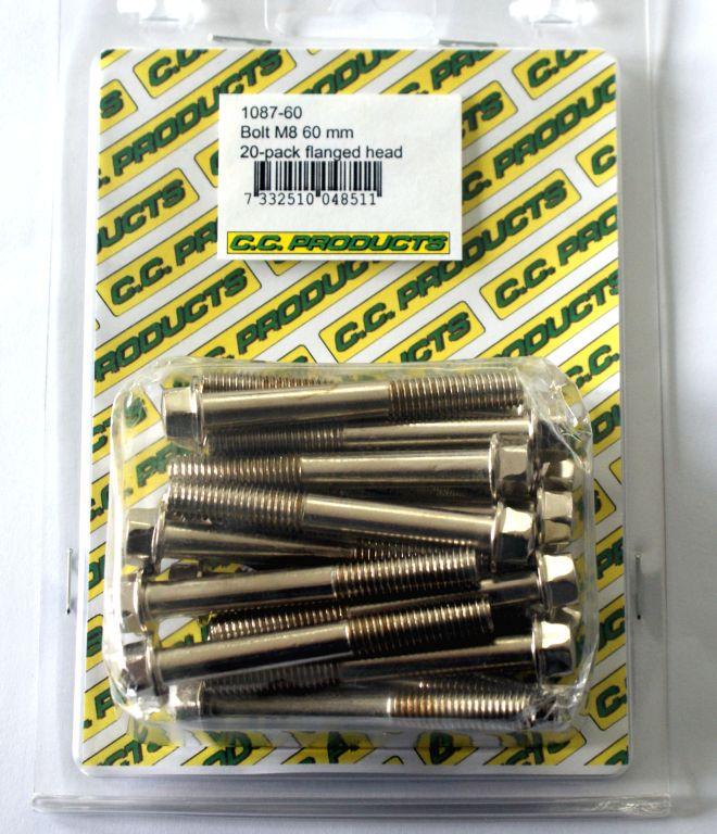 CC Products M8 X 60mm Flange Bolt, Pack of 20, 10mm Hex