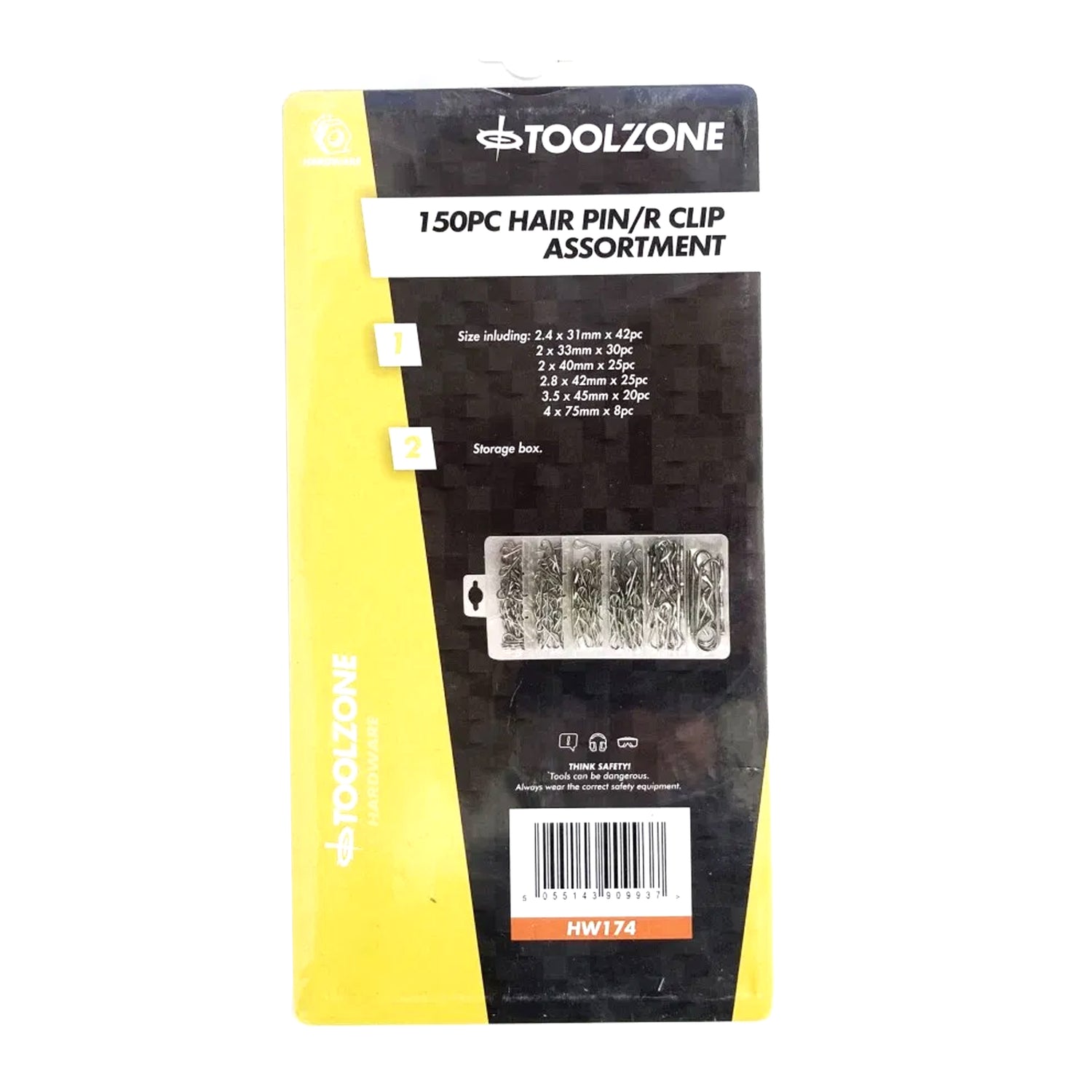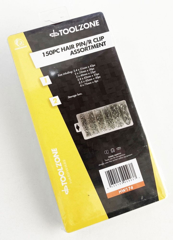 Toolzone Hair Pin R Clip Assortment 150pc in Storage Box - Toolzone Kdphw174