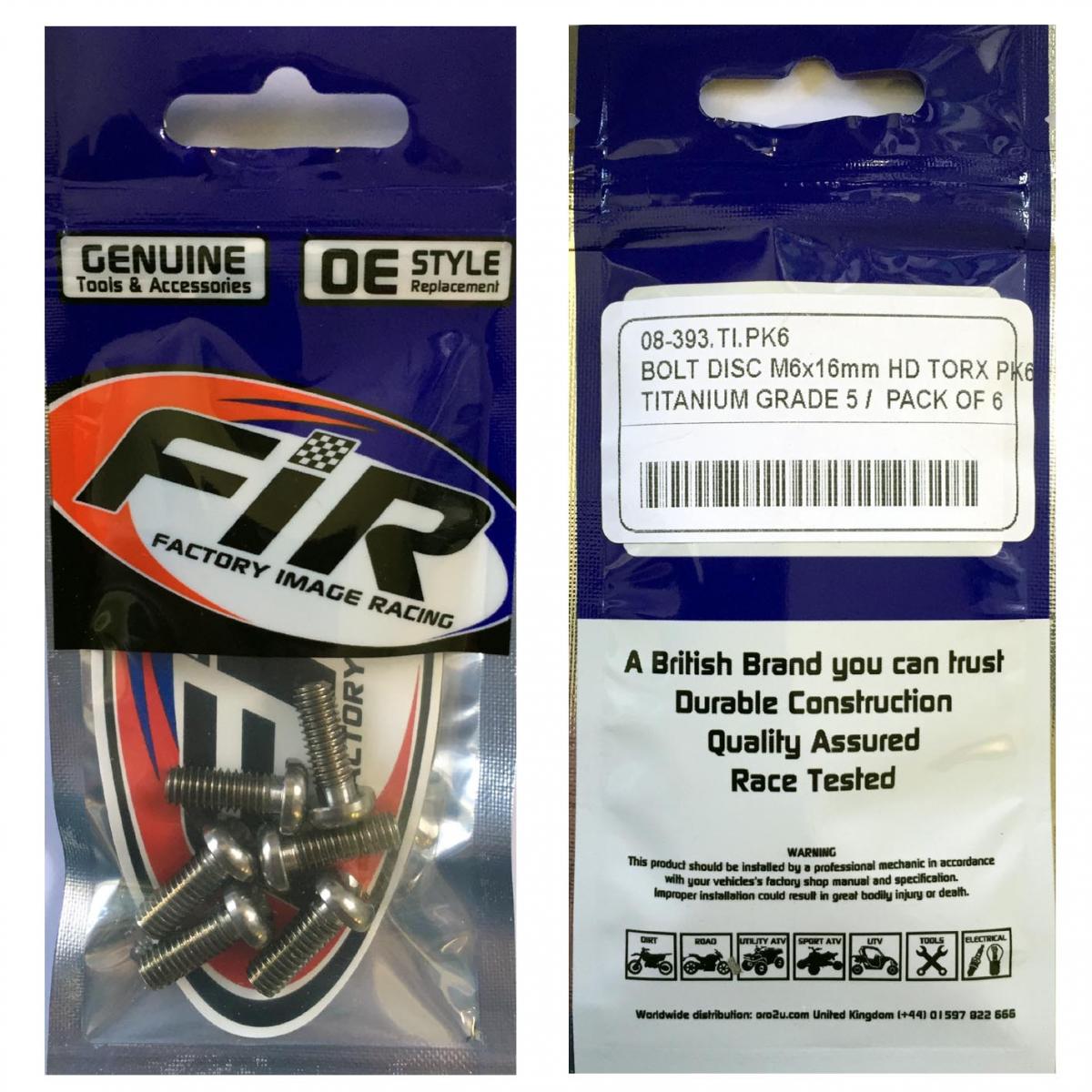 FIR Bolt Disc M6x16mm Hd Torx Pk6, Titanium Grade 5 /pack of 6