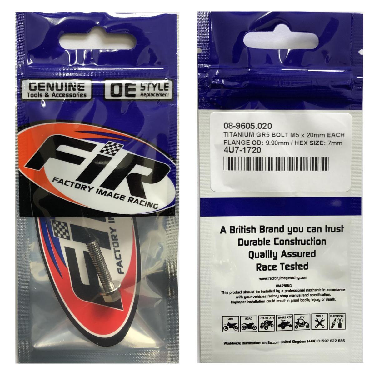 FIR Titanium Gr5 Bolt M5 X 20mm Each, Flange Od: 9.90mm / Hex Size: 7mm, /