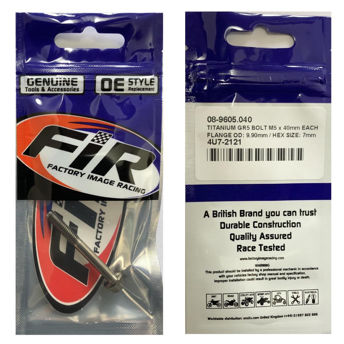 FIR Titanium Gr5 Bolt M5 X 40mm Each, Flange Od: 9.90mm / Hex Size: 7mm, /