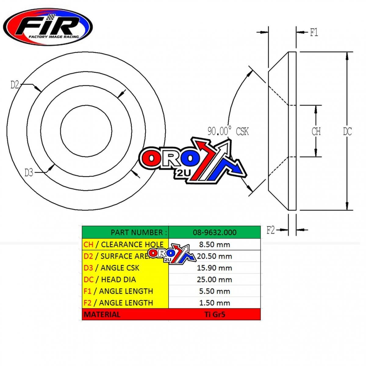 FIR Titanium M8 Csk Washer Pk4, Titanium Grade 5 / Pack of 4