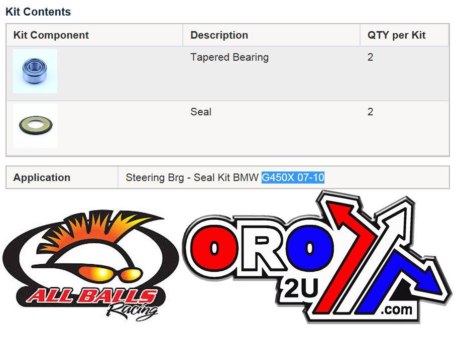 All Balls Racing Steering Bearing Kit Allballs, Allballs 22-1068 Bmw/harley