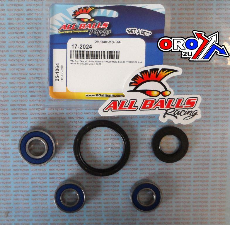 All Balls Racing Wheel Bearing Kit Front 85-89 Yam YFM200/225/350, Allballs 25-1064 ATV