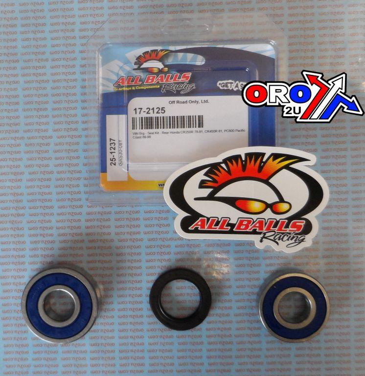 All Balls Racing Wheel Bearing Kit Rear 78-98 Hon CR250/450/PC800, Allballs 25-1237 Dirt/road