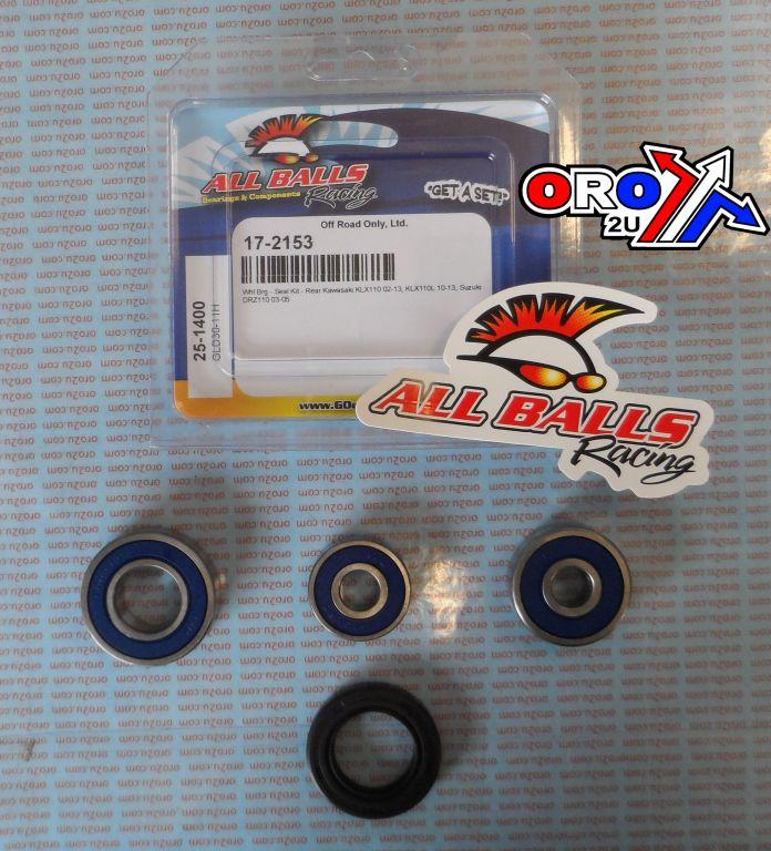 All Balls Racing Wheel Bearing Kit Rear 02-22 Kaw KLX110/suz DRZ110, Allballs 25-1400 Dirt/road