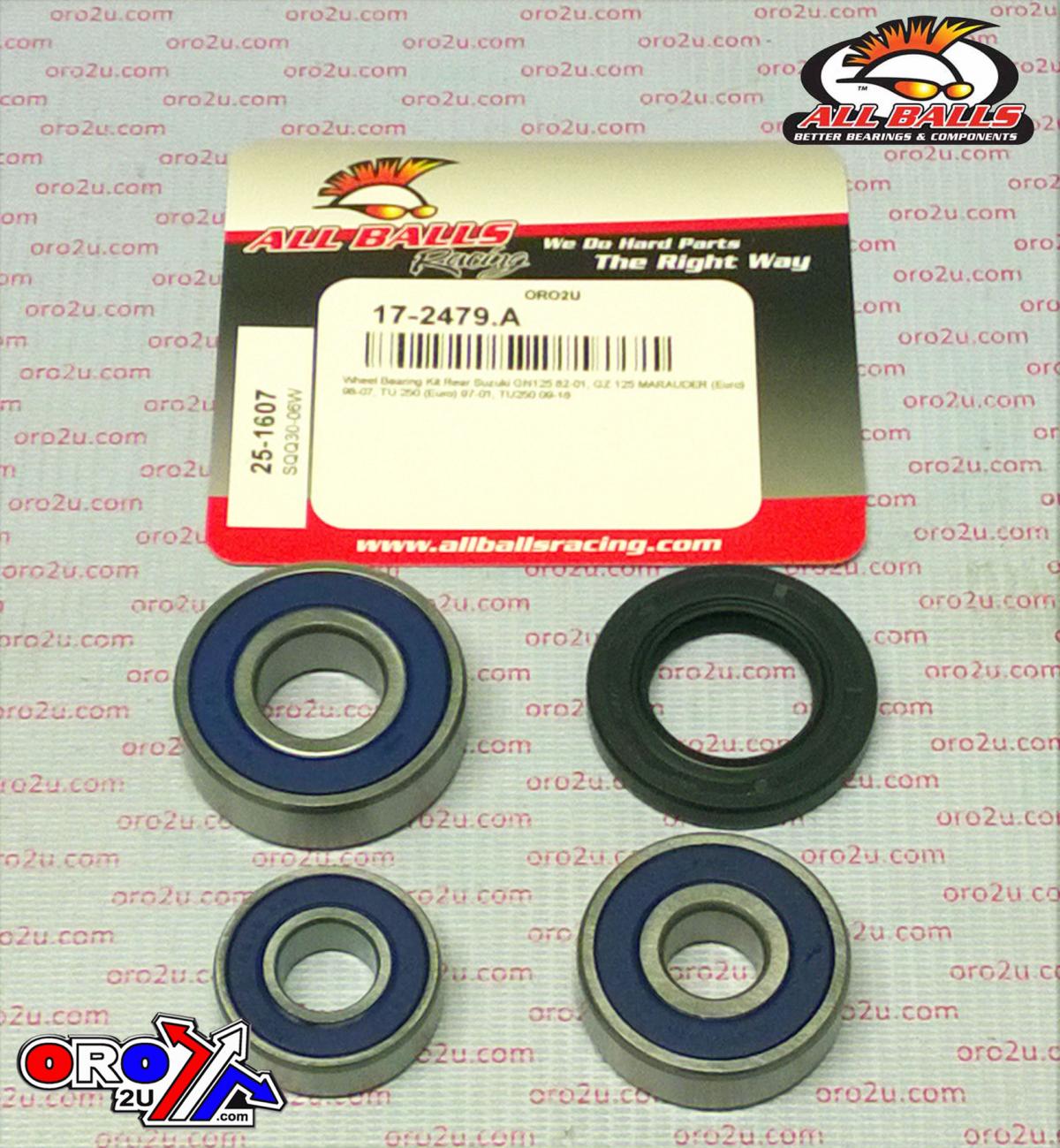 All Balls Racing Wheel Bearing Kit Rear 82-19 Suz Gn/gz 125/TU250, Allballs 25-1607 Road
