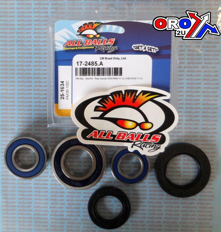 All Balls Racing Wheel Bearing Kit Rear 11-21 Suz Gsx-r600/750, Allballs 25-1634 Road