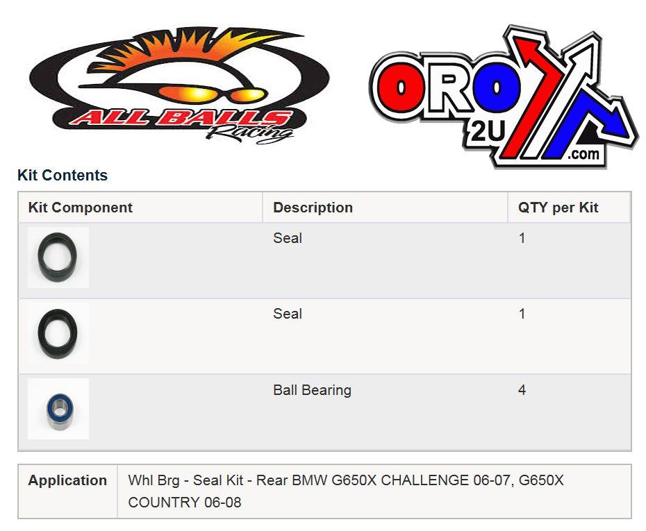 All Balls Racing Wheel Bearing Kit Rear 06-08 Bmw G650x Country/challenge, Allballs 25-1672 Road