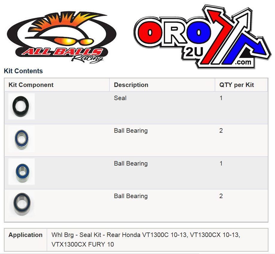All Balls Racing Wheel Bearing Kit Rear 10-20 Hon Vt/vtx 1300, Allballs 25-1656 Road