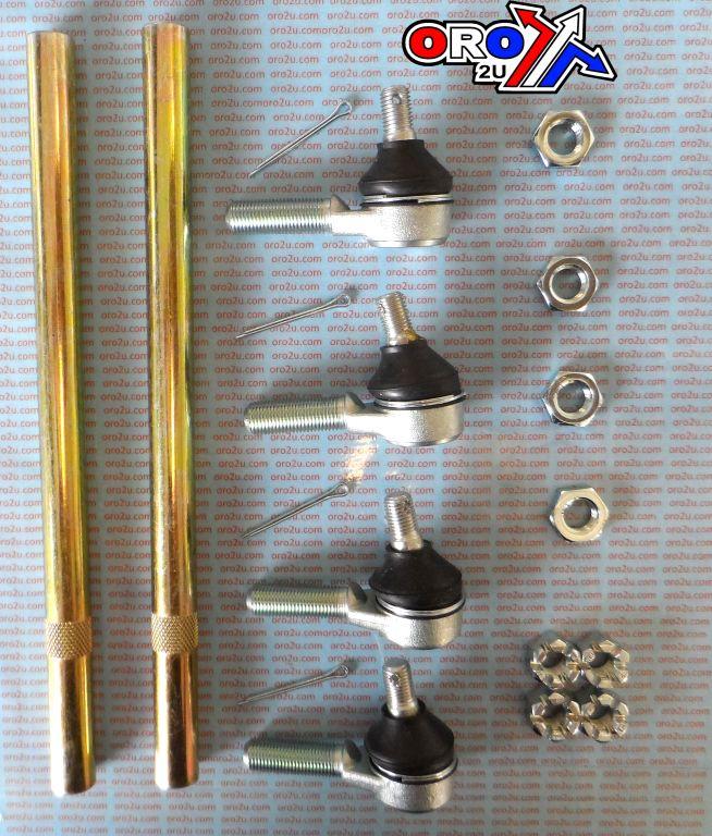 - Each kit contains two tie rods, four tie rod ends, along with cotter pins and jam nuts.