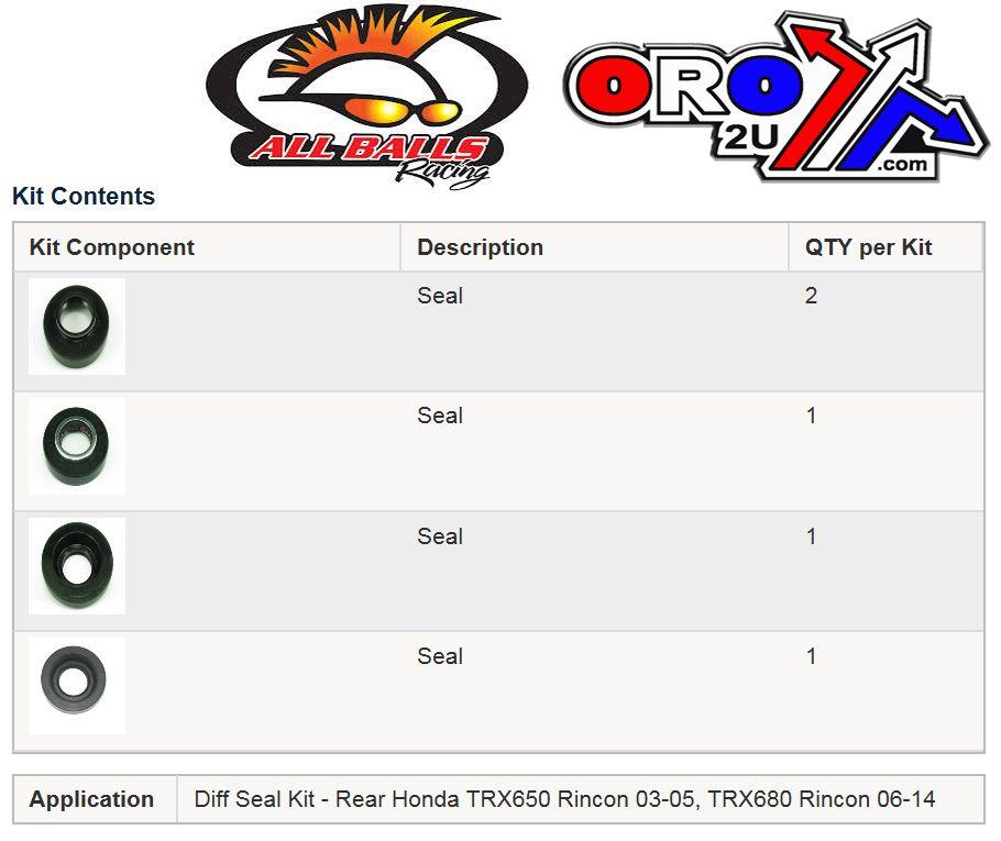 All Balls Racing Differential Seal Kit TRX650, Allballs 25-2047-5 TRX680