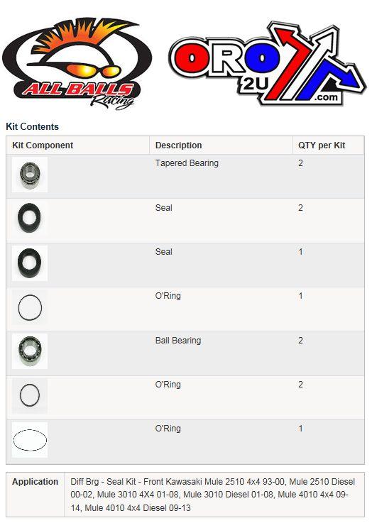 All Balls Racing Differential Kit Mule 2510, Allballs 25-2093 4010 4x4 Dies
