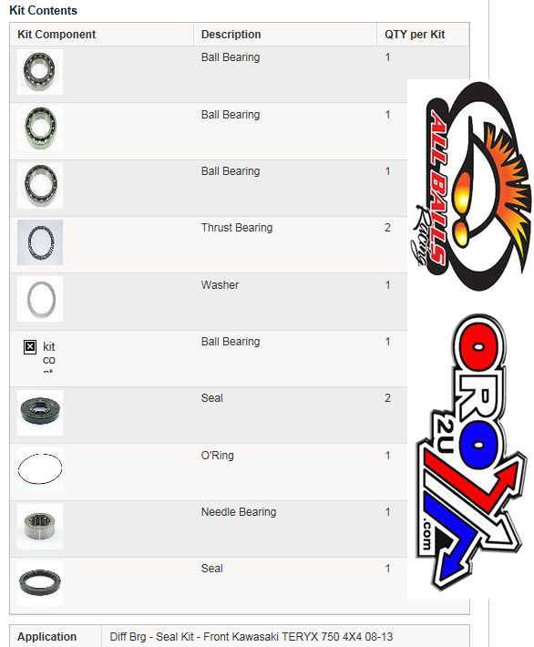 All Balls Racing Differential Kit Teryx 750, Allballs 25-2094 Kawasaki UTV