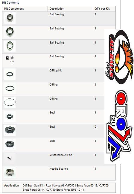All Balls Racing Differential Kit KVF750, Allballs 25-2091 Brute Force