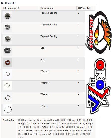 All Balls Racing Differential Kit Polaris, Allballs 25-2082 Ranger