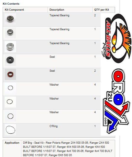 High-quality precision bearings and seals. This kit contains all the necessary bearings and seals to service an ATV differential.