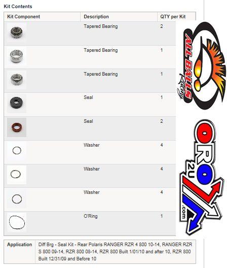 High-quality precision bearings and seals. This kit contains all the necessary bearings and seals to service an ATV differential.