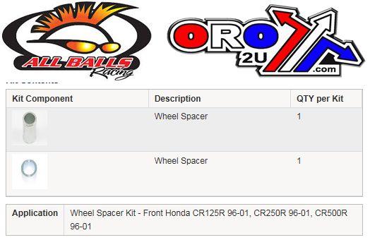 All Balls Racing Wheel Spacer Kit CR 96-01, Allballs 11-1004front