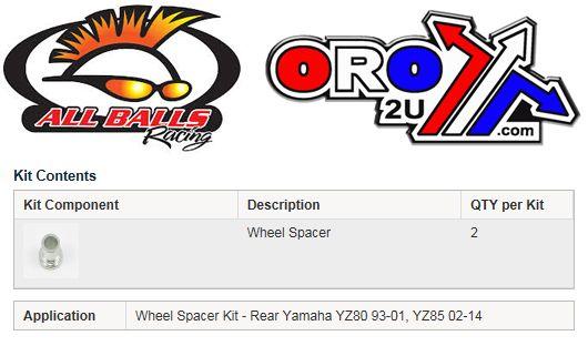 All Balls Racing Wheel Spacer Kit YZ80 YZ85, Allballs 11-1076