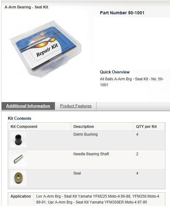 All Balls Racing Lower A-arm Bearing & Seal Kit, Allballs 50-1001 Yamaha