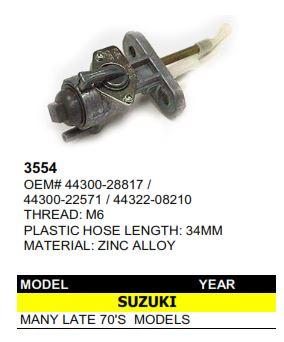 Bronco Fuel Petcock Tap Suzuki TS100 TS125 TS185 TS250 TM75 TM100 TM125 TM250 TM400 44300-22571, 44322-08210, 44300-28817