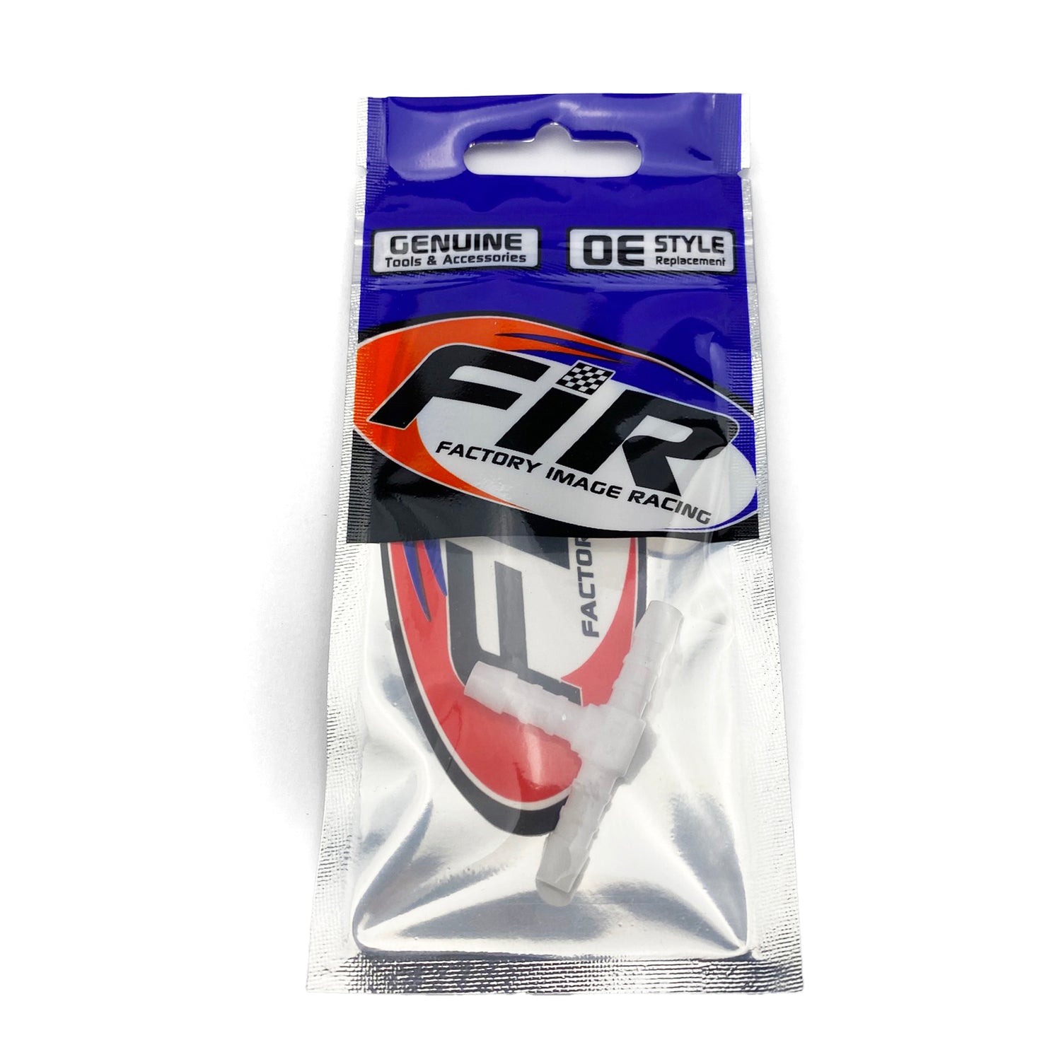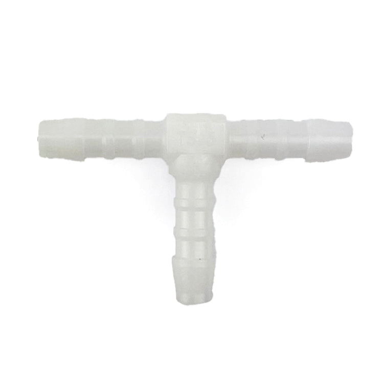 White fuel-resistant plastic (Acetal) Fitting used to run two hoses into one May be used with O-Clips or hose clamps