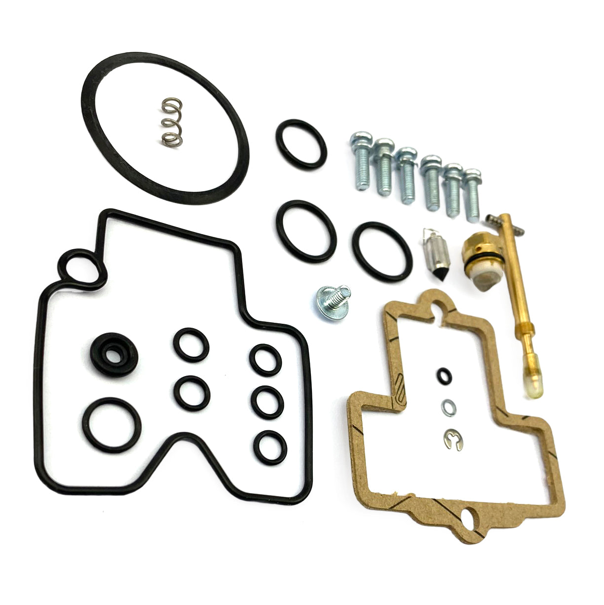 - Kit includes all O-rings, gaskets, jets, needle, mixture screw, float bowl screws, float valve needle and seat.