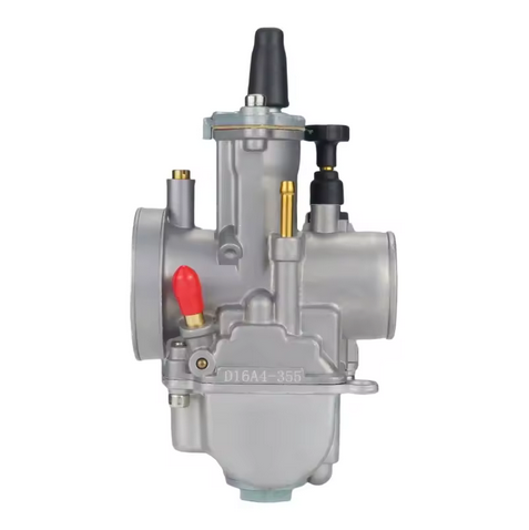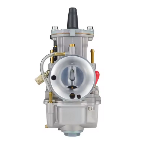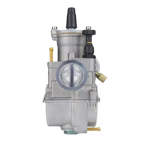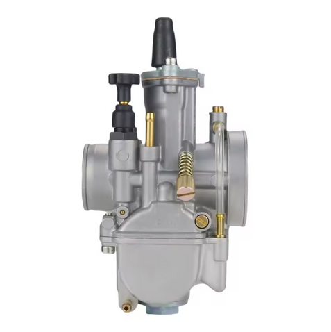 18-9920.28Performance OKO 28mm PWK carburettor assembly designed for ATVs, motocross bikes, dirt bikes, scooters, street bikes, and go-karts. Universal fitment with manual choke and included intake manifold boot and clamps for secure installation.