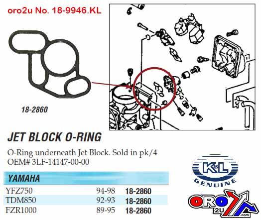K&L 18-2860 JET BLOCK O-RING O-Ring underneath Jet Block. Sold in pk/4