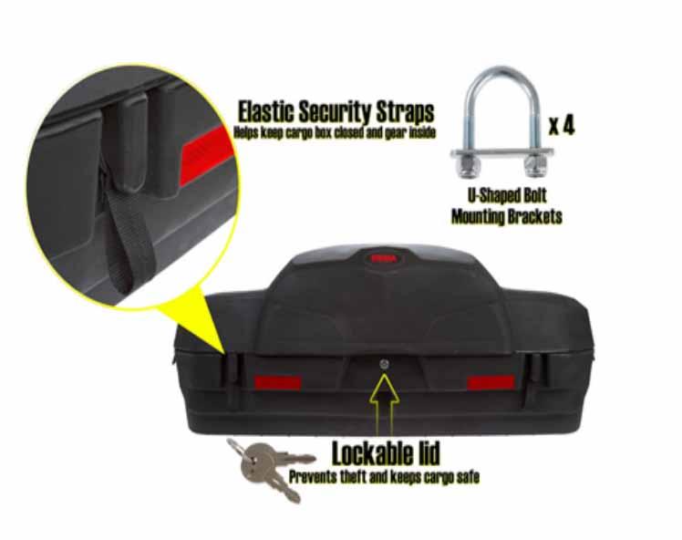 - Easy Installation: Comes with a comprehensive fixing kit (bridges and bolts) for direct installation on your quad. Simply drill holes in the trunk to select your desired location.