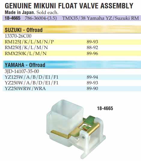 27-4665GENUINE MIKUNI FLOAT VALVE ASSEMBLY K&L 18-4665
