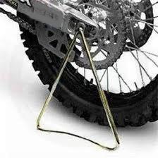 Very handy to have about. Takes up no room. Fits into rear wheel spindle hole or by foot rest mounts. Fits most bikes MX, Enduro, Trail from 80cc to 600cc. Made from steel.