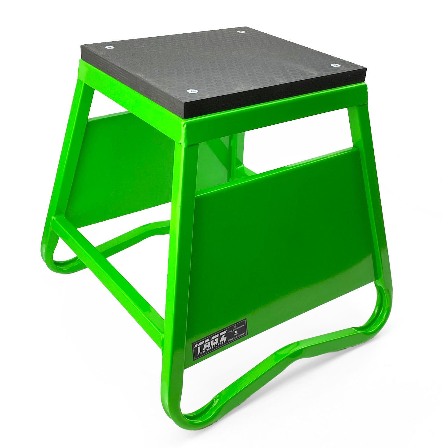 TAG-Z HEAVY DUTY STEEL BOX STAND. A SOLID HEAVY DUTY STEEL STAND CONSTRUCTED FROM 20mm BOX, STANDS AT 380mm TALL. FEATURES A LARGE DECAL PANEL AND ANTI-ROLL BASE FRAME.THE TOP IS MADE FROM 18mm 250x250 BUFFALO BOARD HEXA PATTERN PHENOL FILM FACE, SO NO SLIPPING WHEN WET.
