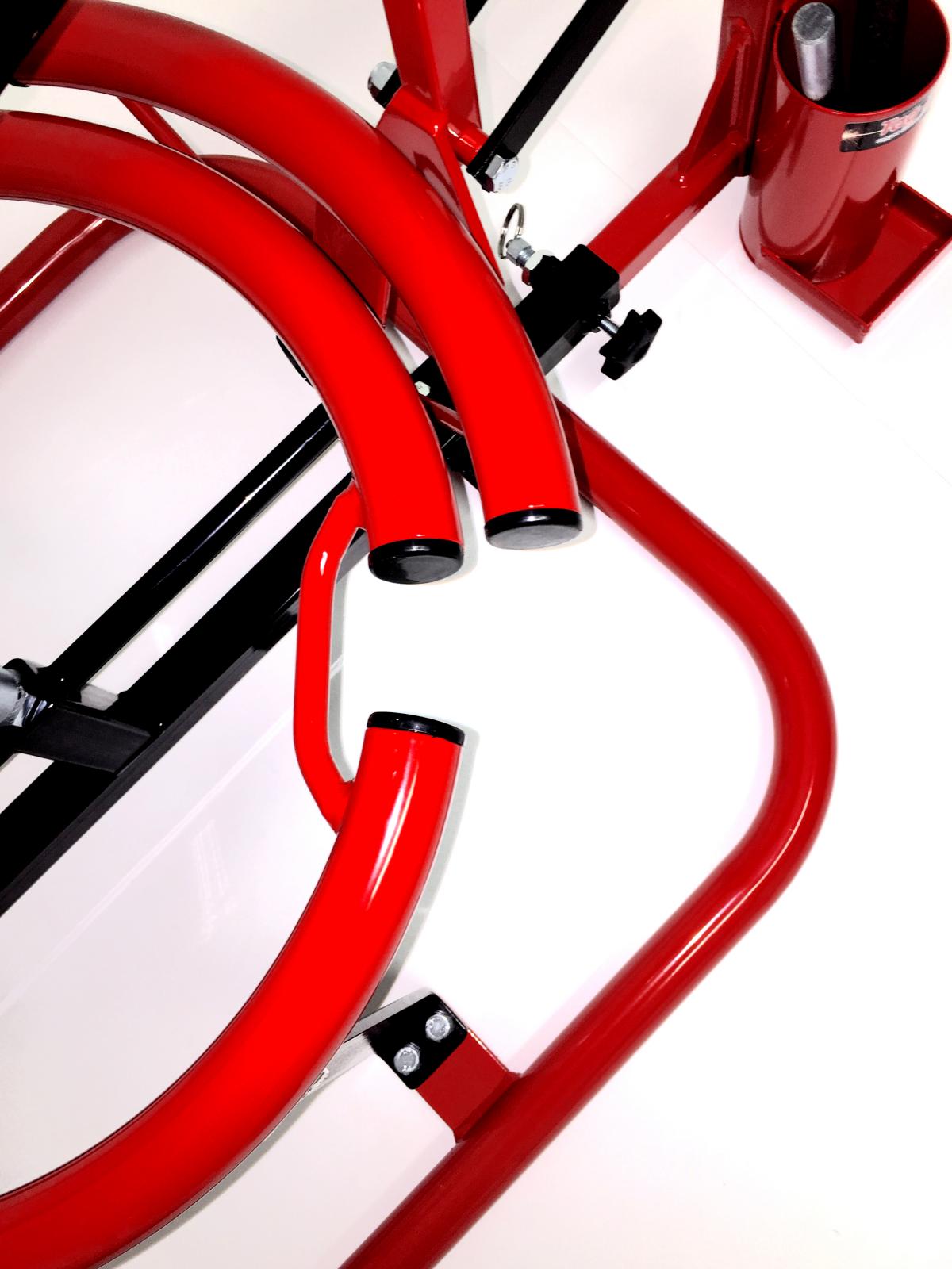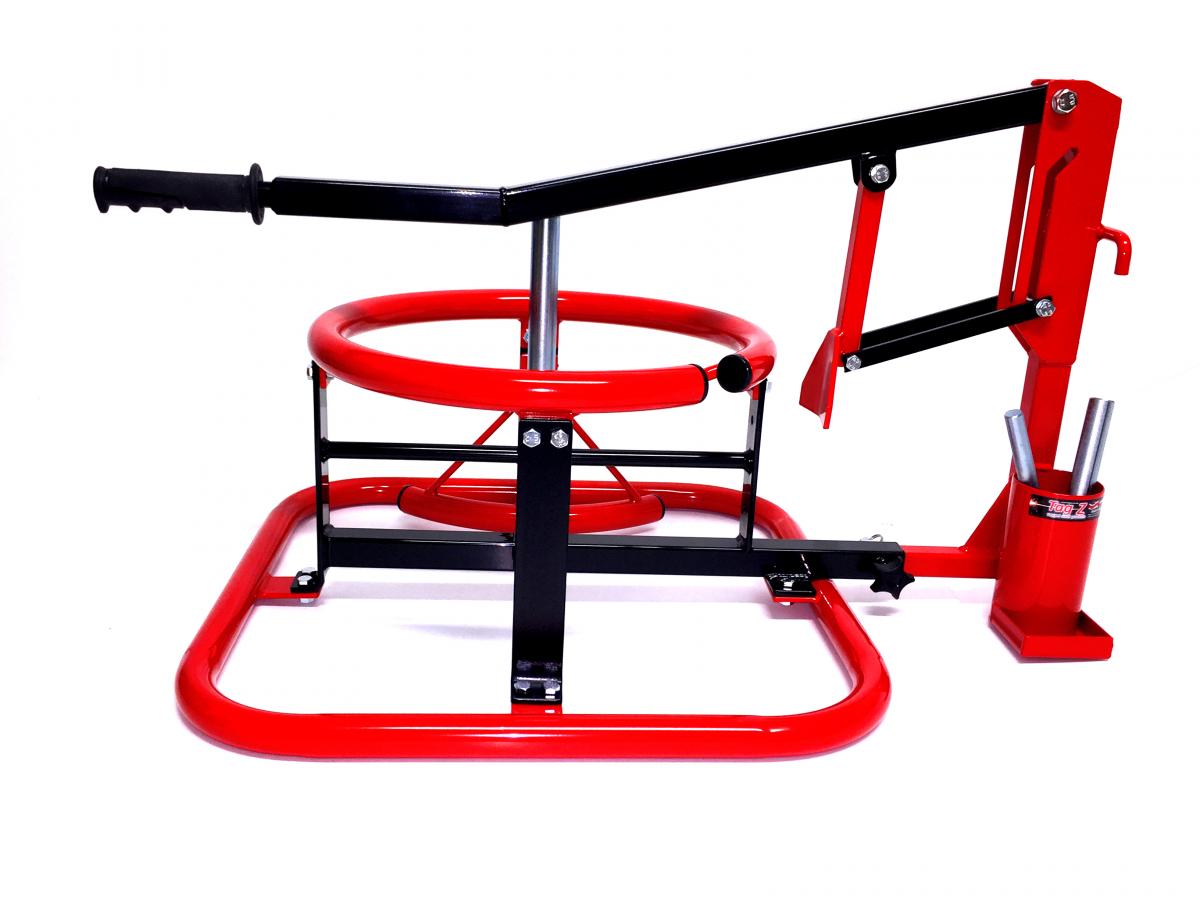 Constructed from high quality steel it has been designed with the aim of an intuitive and safe mousse tyre change at the track, workshop or at home. The grip featured handle allows for an easy and safe hold whilst allowing for an easy removal of the tyre from the rim. Just a quarter of the bead on one side needs to be removed and the breaker bar will do the rest of the work for you. The unique base design offers unrivaled support of the changer whilst changing your mousse tyre.