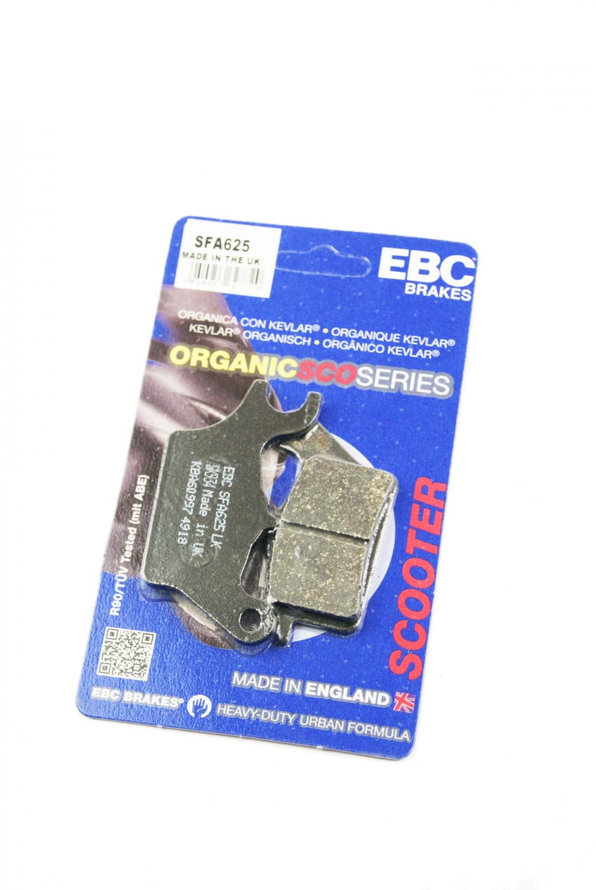 EBC SFA Scooter Pads A new range of organic scooter pads in premium quality organic material designed specifically for lighter weight motorcycles; such as scooters to give good lifetime and good initial brake response at a price point appropriate for the market.
