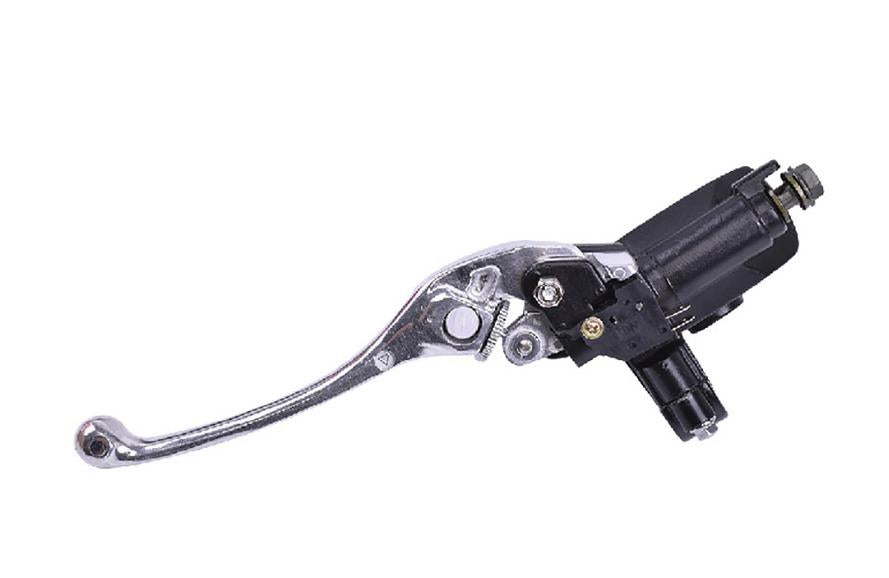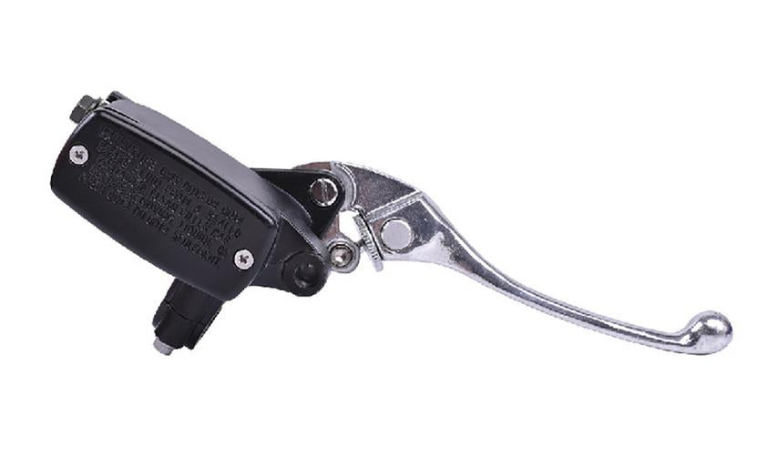 42-224.AT.BKAdjustable front hydraulic brake master cylinder lever, designed for Honda motorcycles and universal compatibility with 7/8" (22mm) handlebars. This black master cylinder features a 10mm mirror fitting and integrated brake light switch for convenience.